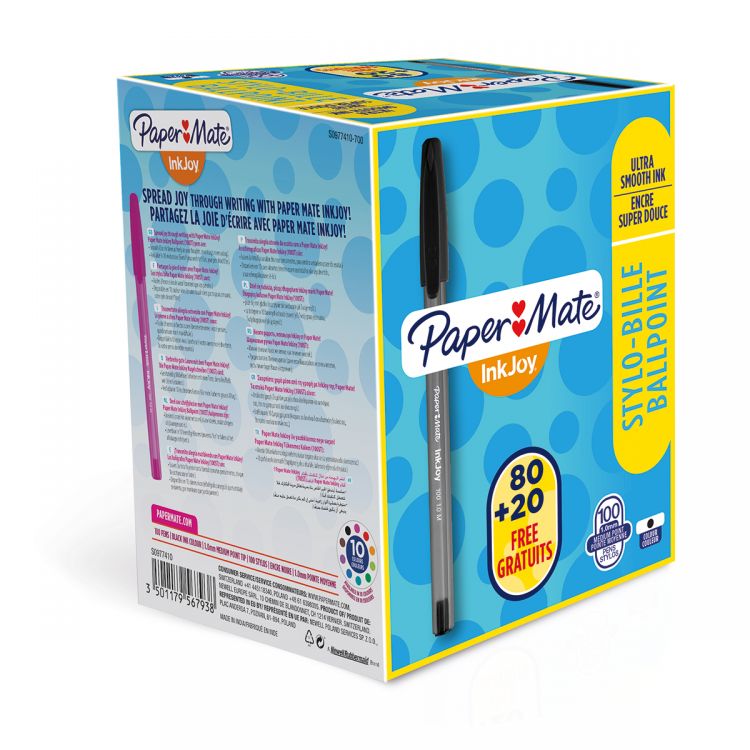 Paper Mate S0977410 Inkjoy 100 Capped with a Medium Tip Black Ink Box of 100