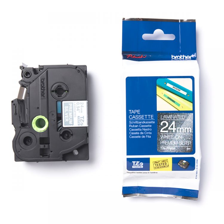 Brother TZE-PR955 White on Silver 8M x 24mm Premium Tape
