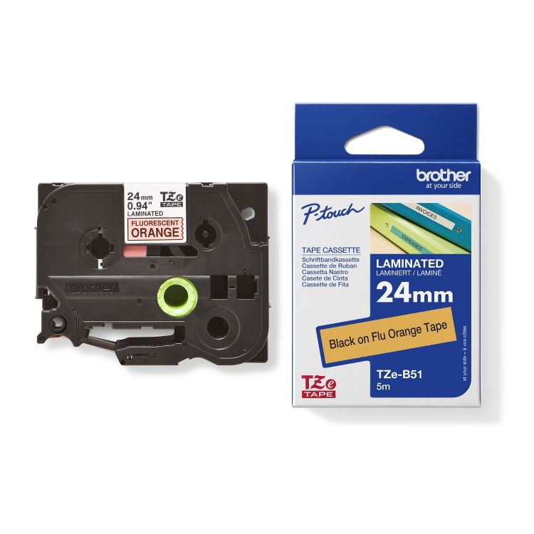 Brother TZEB51 Black on Orange 5M x 24mm Fluorescent Tape